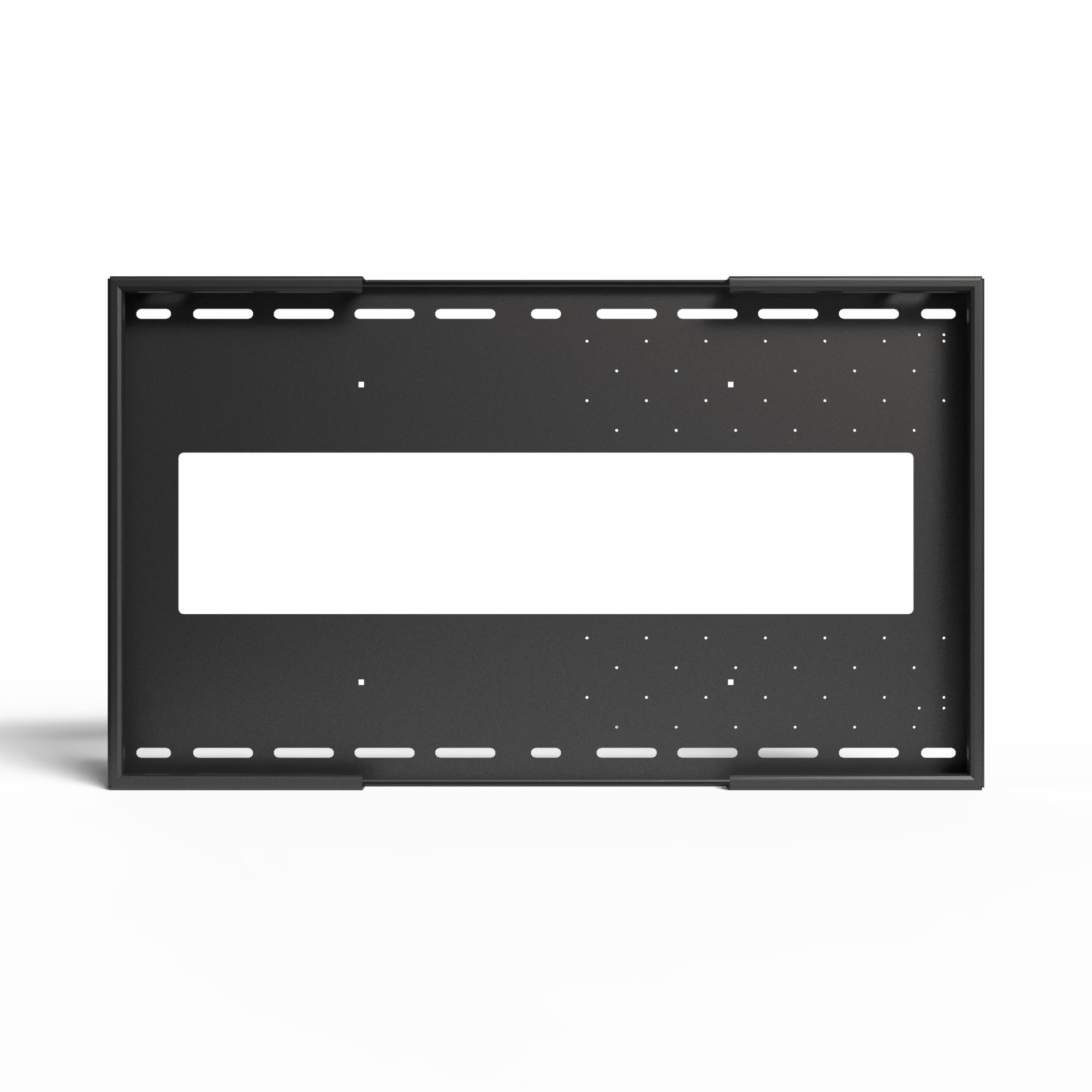 The RoomReady Set 49″ Slim (42.44″ W × 24.88″ H × 2.00″ D) is designed to fit displays from 49” to 65”. Built with a single-piece 12-gauge steel, this wall-mounted AV rack neatly hides cables and equipment behind the display. Its ultra-slim design ensures ADA compliance, making it perfect for use in egress pathways and high-traffic areas.